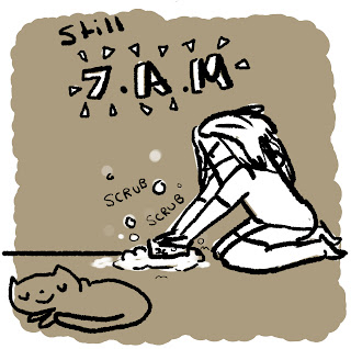 Cleaning cat vomit from my carpet at 7a.m (everyone's favourite hour). At least she had the decency to move from the bed...